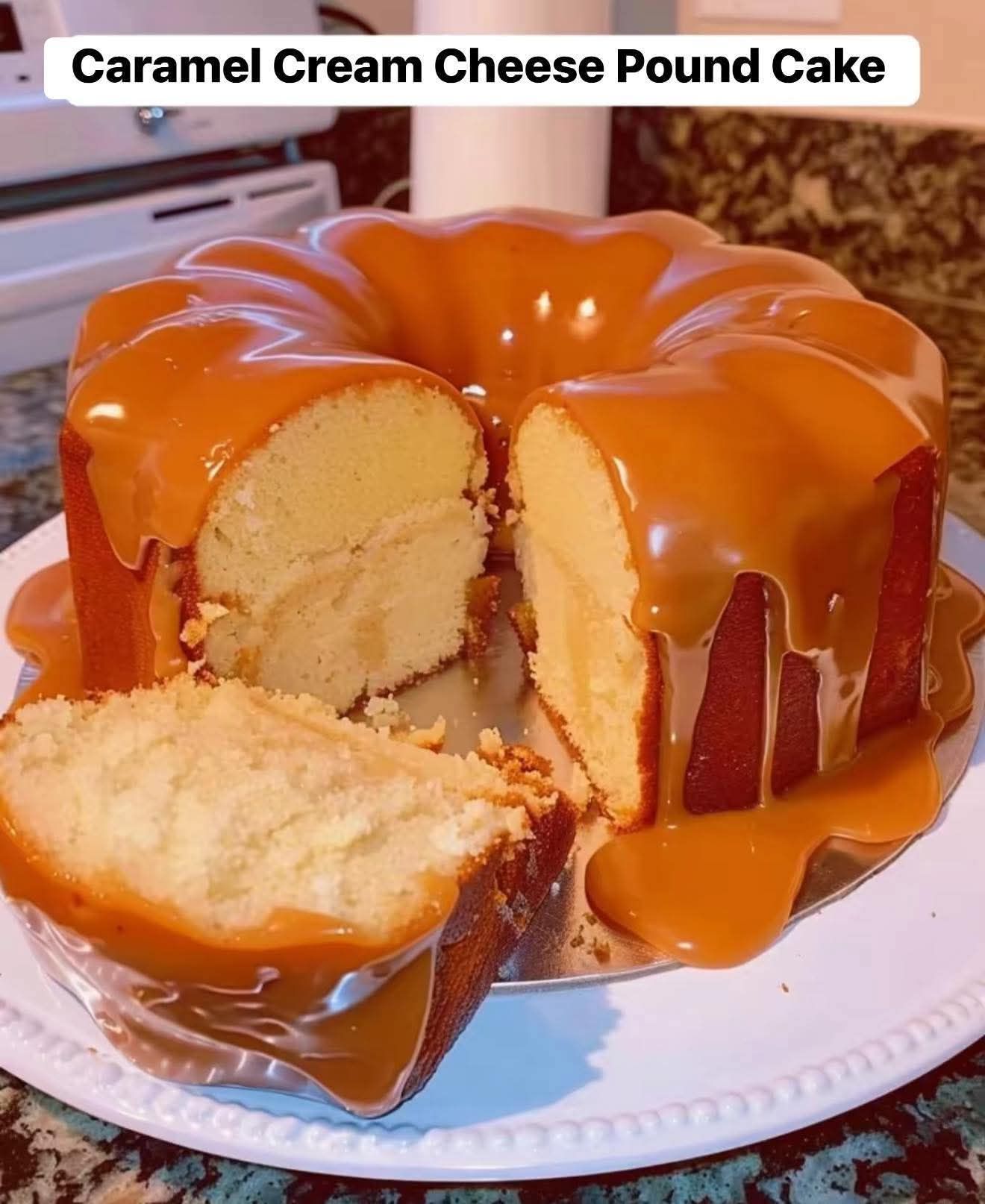This classic pound cake bakes up dense yet silky, with a fine, even crumb thanks to creamed butter and cream cheese. A slow bake at a moderate temperature keeps the interior moist while the exterior turns a gentle golden. Finish with a quick stovetop caramel sauce that drapes over every ridge and settles into a glossy, spoon‑ready glaze.