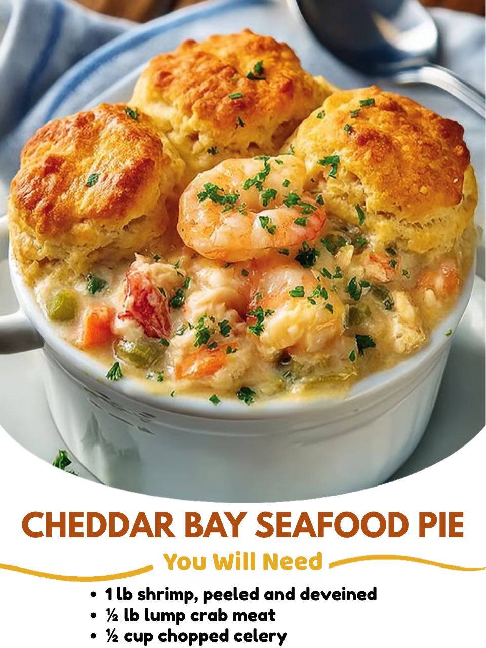 This Cheddar Bay Seafood Pie blends tender shrimp and rich crab meat with a creamy, savory sauce and a golden Cheddar Bay biscuit topping. The dish combines coastal comfort with homestyle warmth — perfect for a cozy dinner or a crowd-pleasing weekend meal.