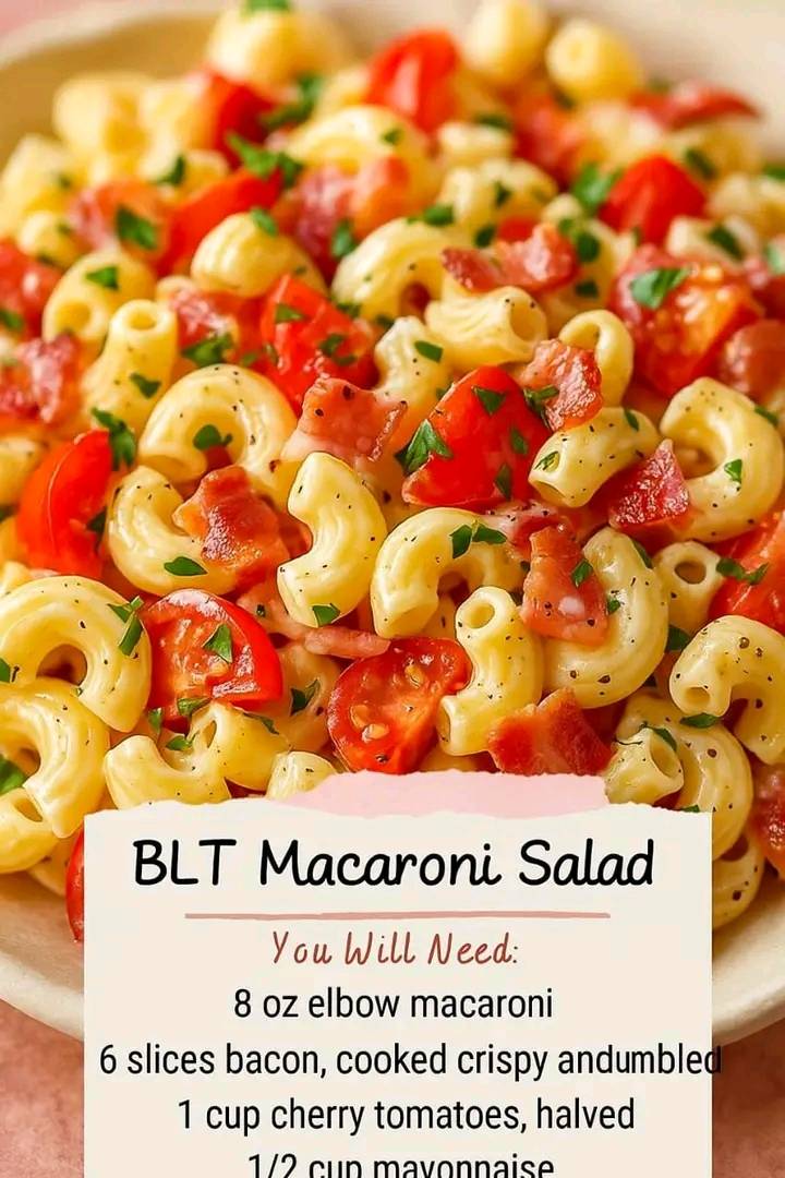 BLT Macaroni Salad takes everything you love about the classic bacon, lettuce, and tomato sandwich and turns it into a creamy, crowd-pleasing pasta salad. Cool, tender macaroni is tossed in a tangy, garlicky dressing, then loaded with crispy bacon, juicy tomatoes, and fresh lettuce for a dish that’s both comforting and refreshing.