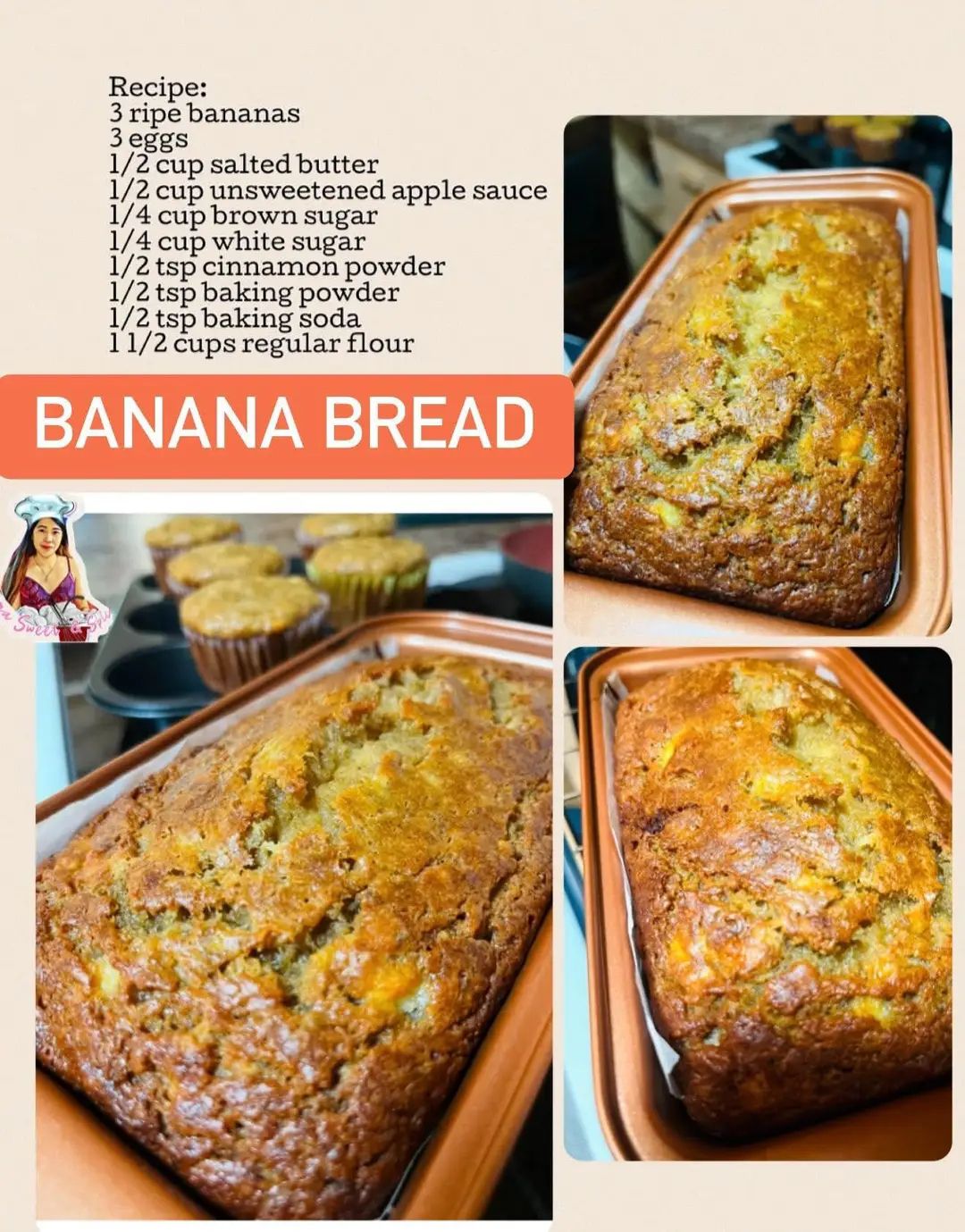 Here’s a simple and delicious banana bread recipe that will fill your home with the irresistible scent of baked goodness. With ripe bananas, a mix of butter and applesauce, and a dash of cinnamon, this banana bread is perfect for breakfast, a snack, or a sweet treat any time of day!
