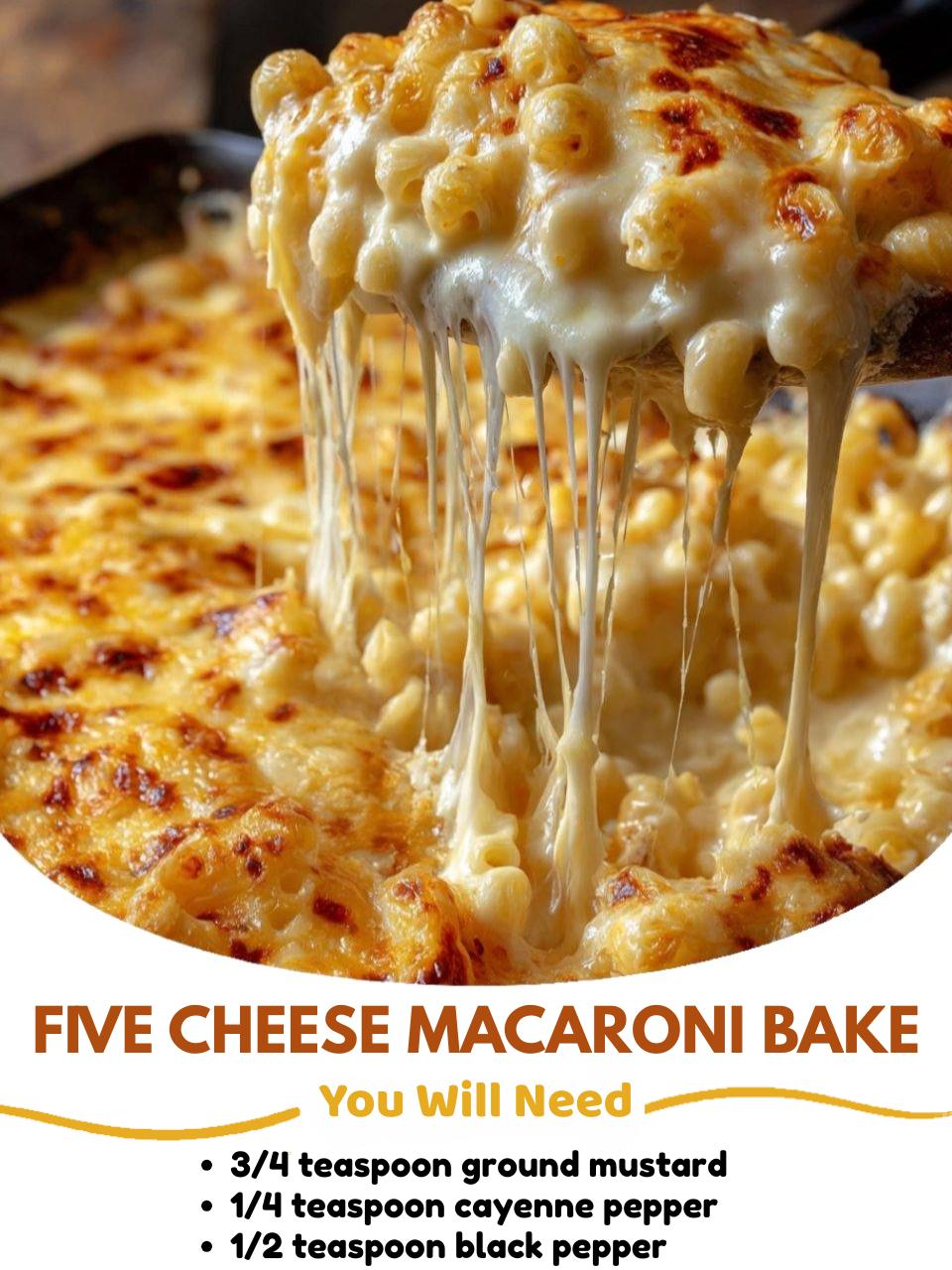 This Five Cheese Macaroni Bake is the ultimate comfort food — creamy, rich, and packed with layers of cheesy goodness. A blend of five distinct cheeses combines with tender macaroni and a hint of spice to create a perfectly balanced dish with a golden, bubbling crust. Ideal for weeknight dinners, holidays, or potlucks, it’s a decadent twist on classic mac and cheese that’s sure to impress.