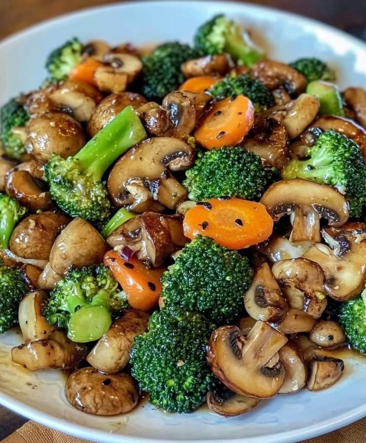 🍯✨ Garlic Mushroom & Broccoli Stir-Fry with Carrots