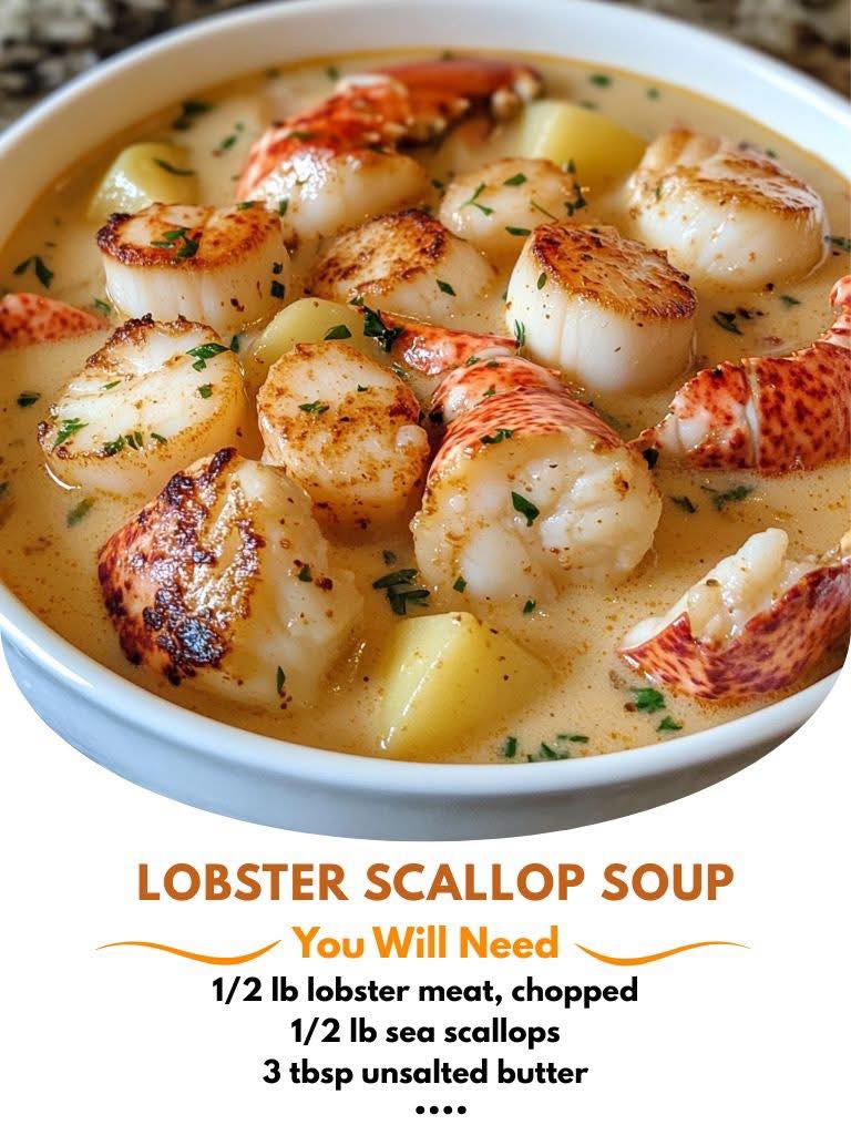 Lobster Scallop Chowder 🦞🥣 is the ultimate luxurious comfort food — perfect for cozy nights or special occasions. Sweet chunks of lobster and tender sea scallops are gently simmered in a rich, buttery base infused with garlic and cream. This elegant chowder is warm, silky, and deeply satisfying — a restaurant-quality dish you can make at home with ease.