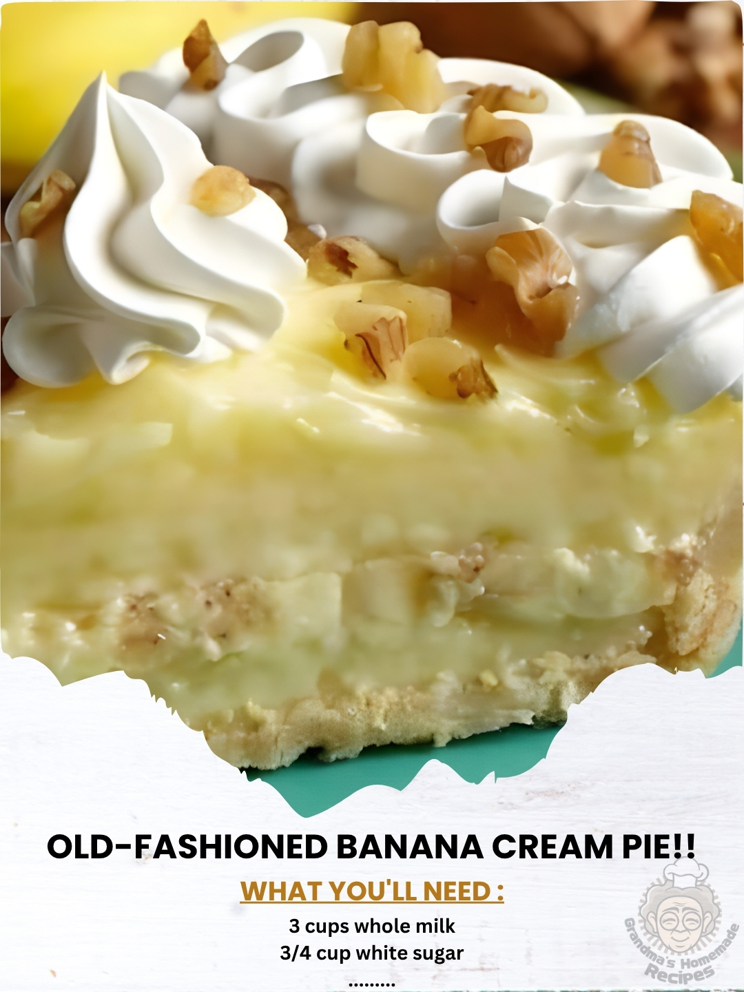 Old-Fashioned Banana Cream Pie — a timeless classic with silky vanilla custard, buttery crust, and sweet banana slices layered inside. This pie is pure comfort dessert bliss, perfect for family gatherings, Sunday dinners, or anytime you’re craving a creamy, nostalgic treat! 🍌💛