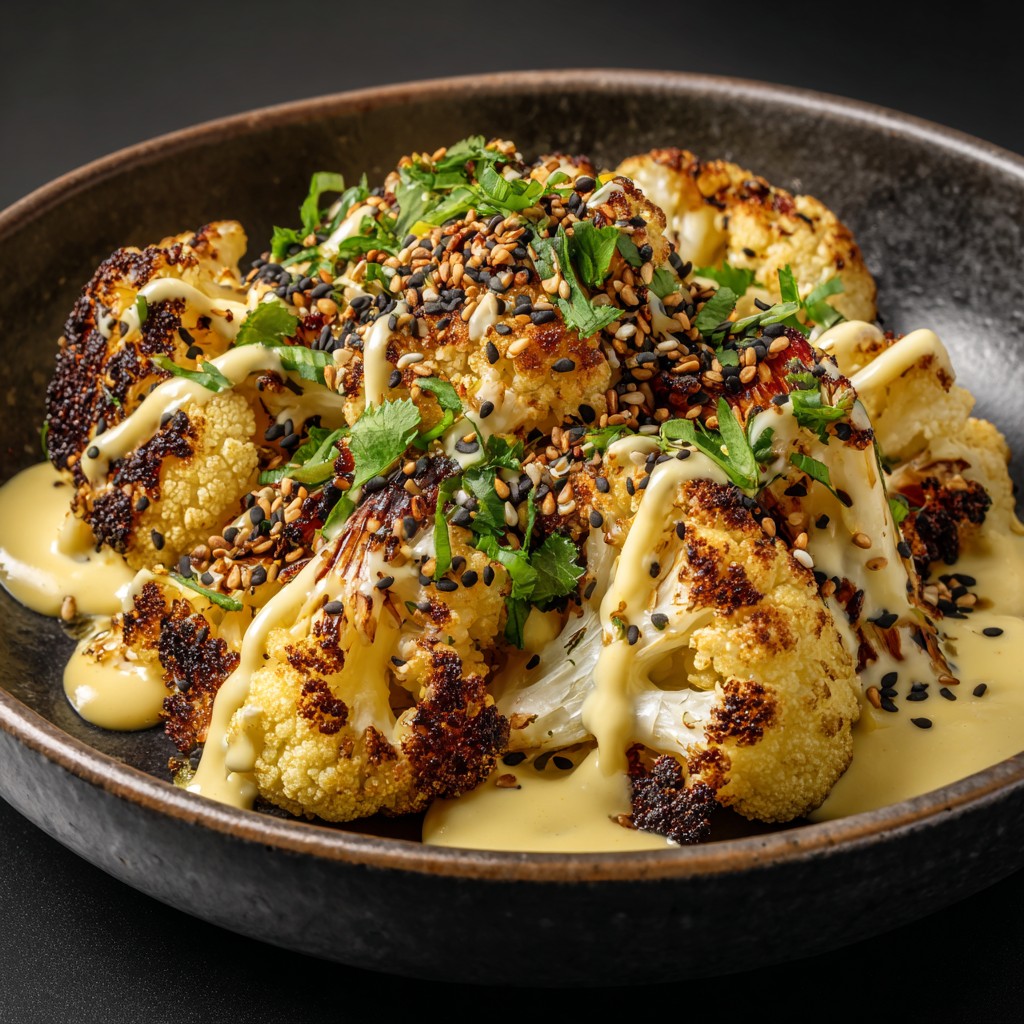 🥥 Cauliflower Gets Exotic! Oven-Roasted Cauliflower with Coconut-Lemongrass & Sesame Sauce 🌿
