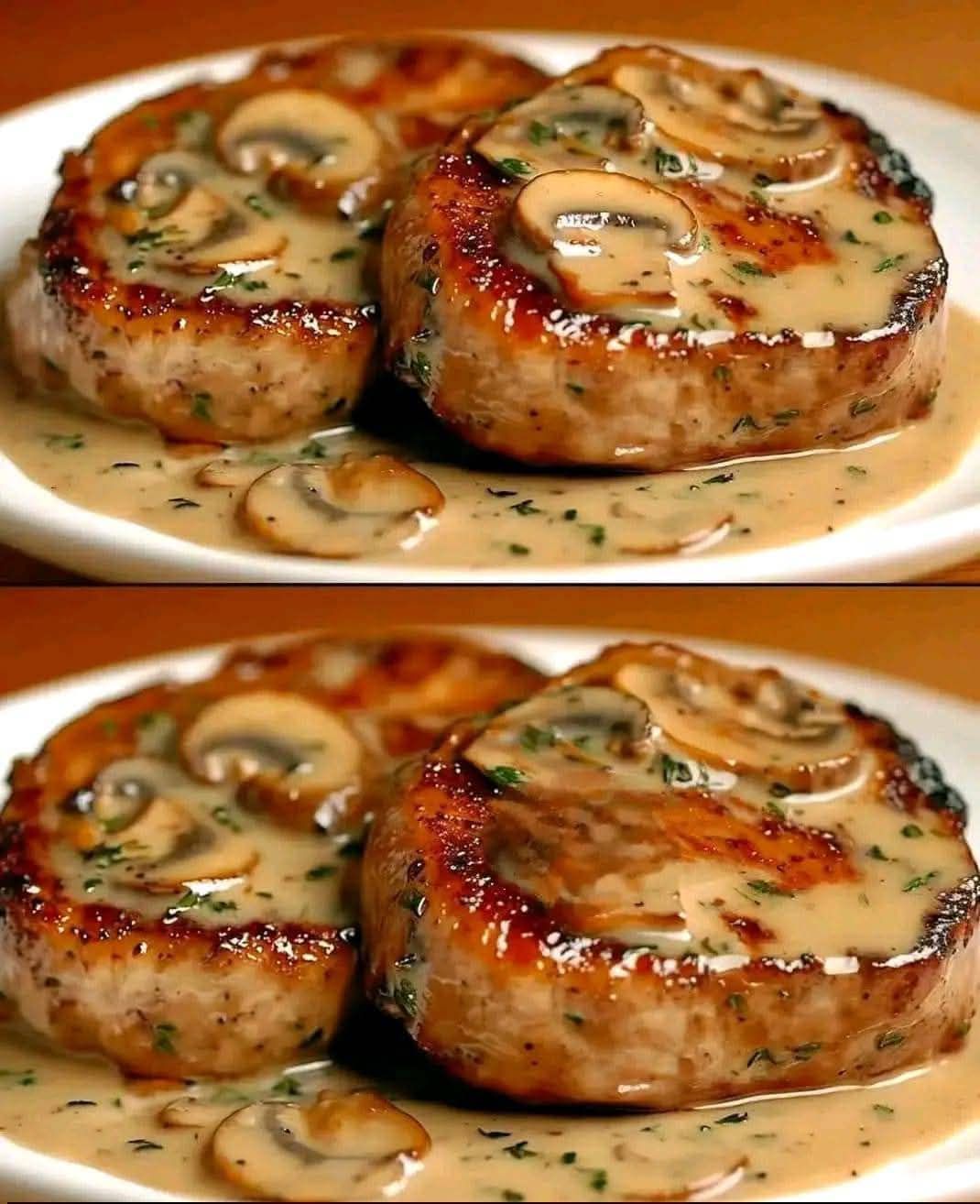 Pork Steaks in Creamy Sauce with Mushrooms