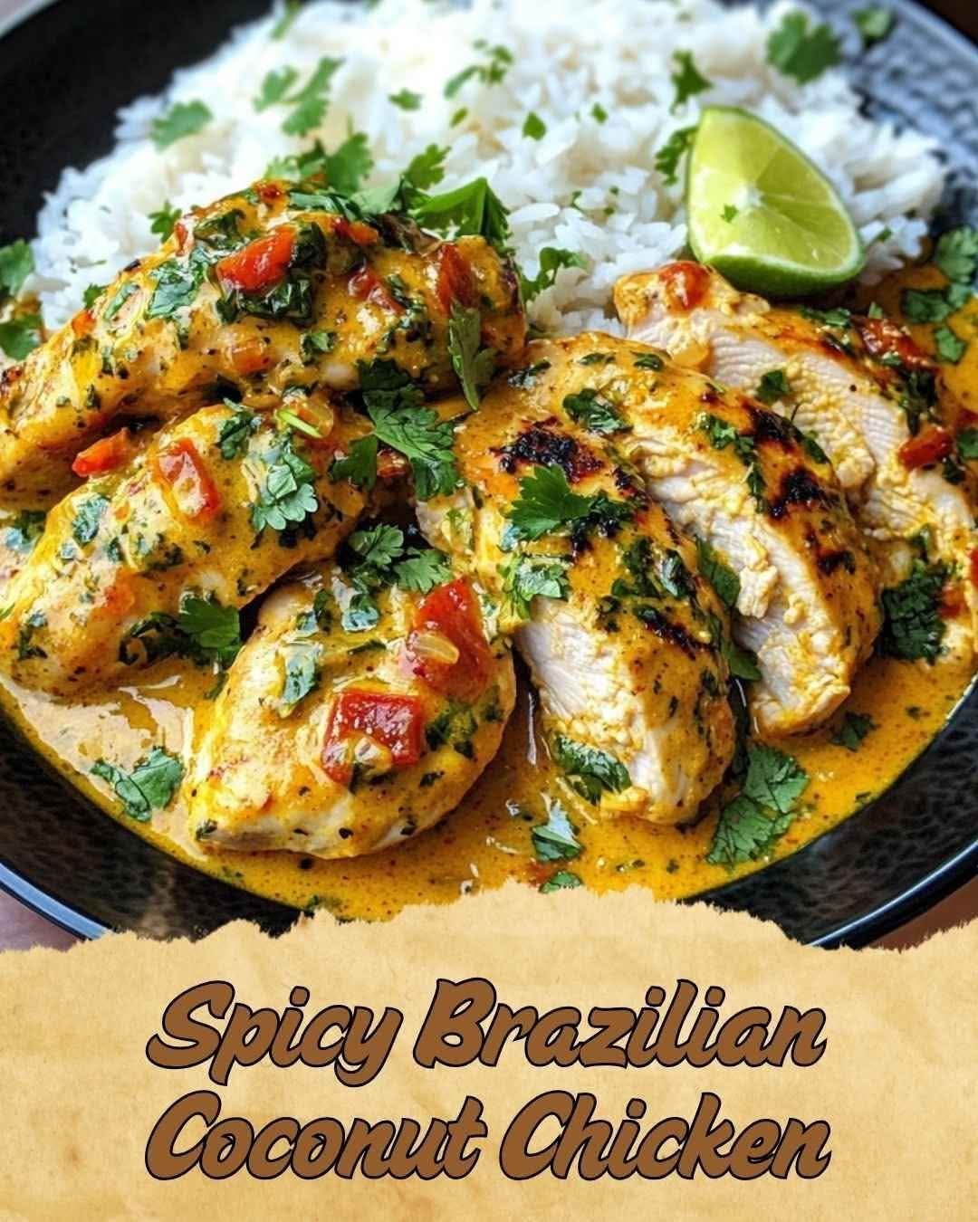 This Spicy Brazilian Coconut Chicken is a vibrant, fiery dish featuring seared chicken thighs simmered in a rich, creamy coconut-tomato sauce spiced with cumin, turmeric, and chili flakes. Finished with lime juice and fresh cilantro, it’s a tropical comfort meal bursting with bold South American flavor.
