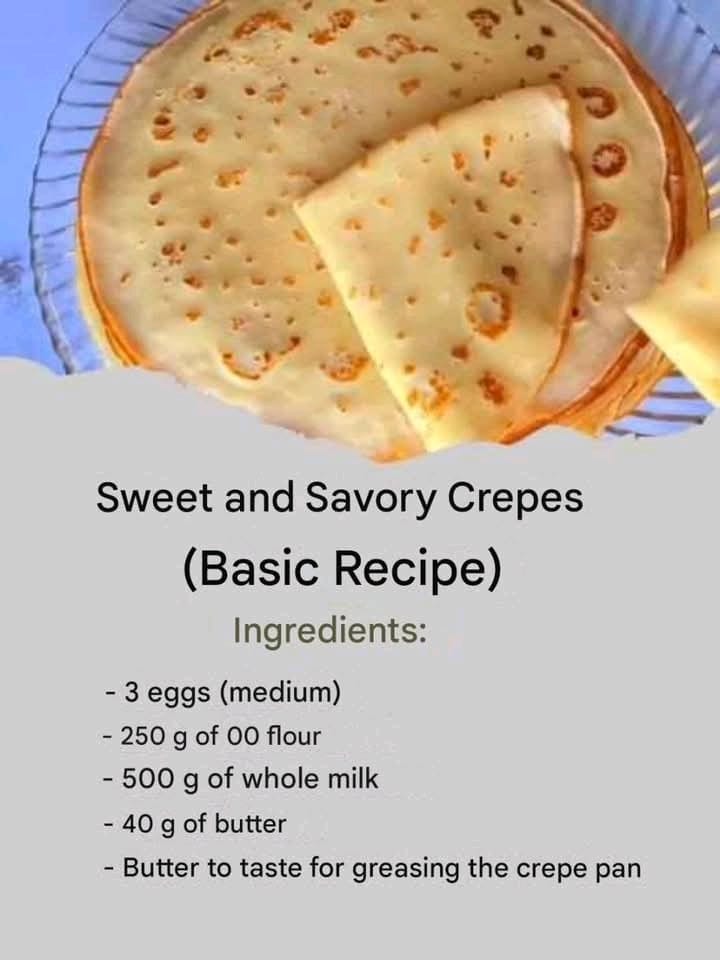 Crepes are a versatile delight that can be enjoyed both sweet and savory. This basic recipe will help you make perfect crepes, ready to be filled however you like!
