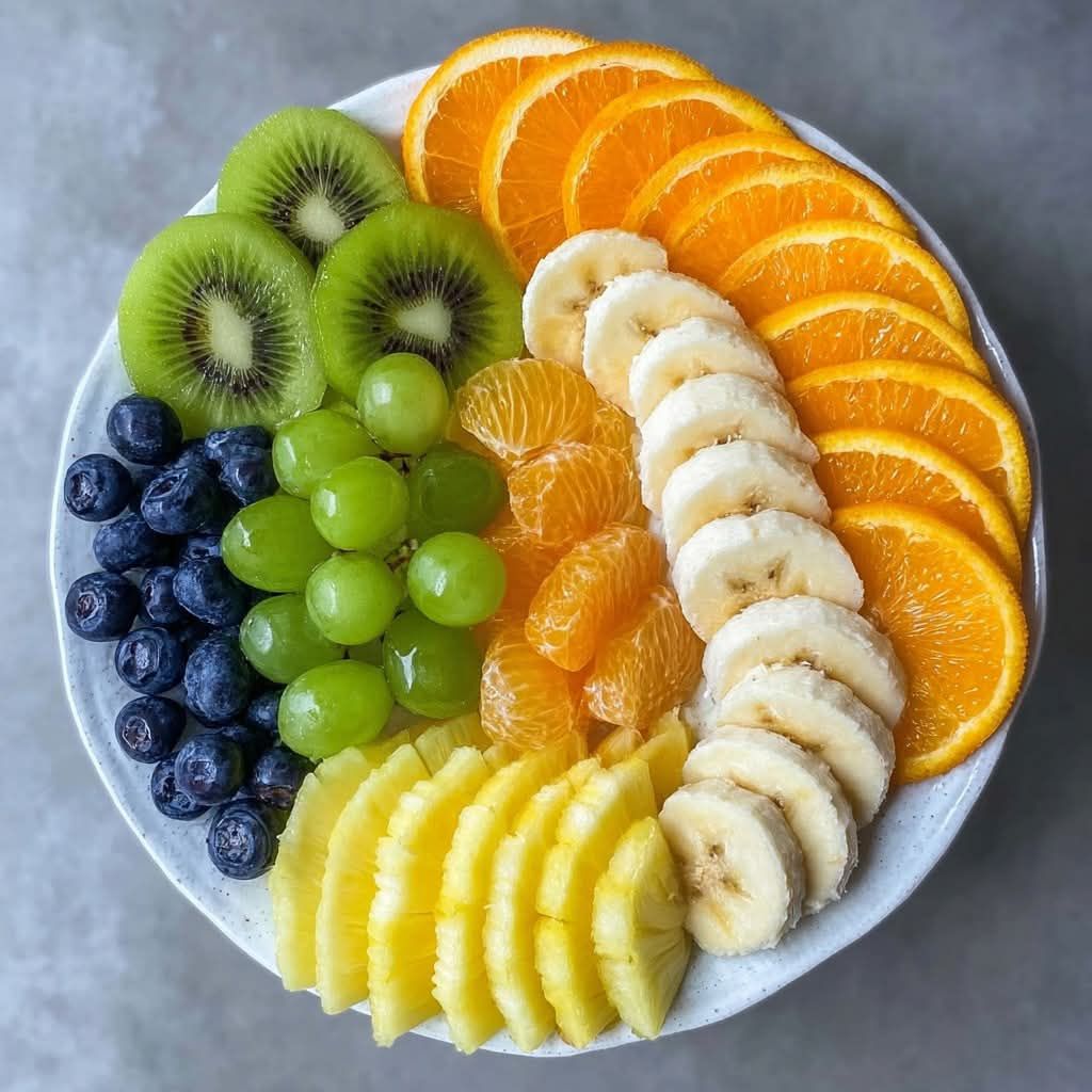 This Tropical Rainbow Fruit Plate is a vibrant and refreshing way to enjoy nature’s sweetness. Packed with colorful tropical fruits like pineapple, mandarin, and kiwi, it’s not only visually stunning but also bursting with vitamins, fiber, and natural energy. Perfect for breakfast, brunch, or a healthy snack — it’s a tropical treat that brightens any table. 🍊🍍🥝🍇