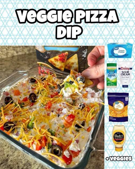 This Veggie Pizza Dip is the ultimate creamy, savory appetizer for any gathering! With a delicious blend of cream cheese, mayo, sour cream, and ranch seasoning, topped with crunchy fresh veggies and melty cheddar, it’s the perfect dip for crackers or tortilla chips. Quick to prepare and always a hit!
